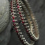 Ethnic bangles handcrafted in sterling silver with semiprecious rubies with detailed craftsmanship on the sides